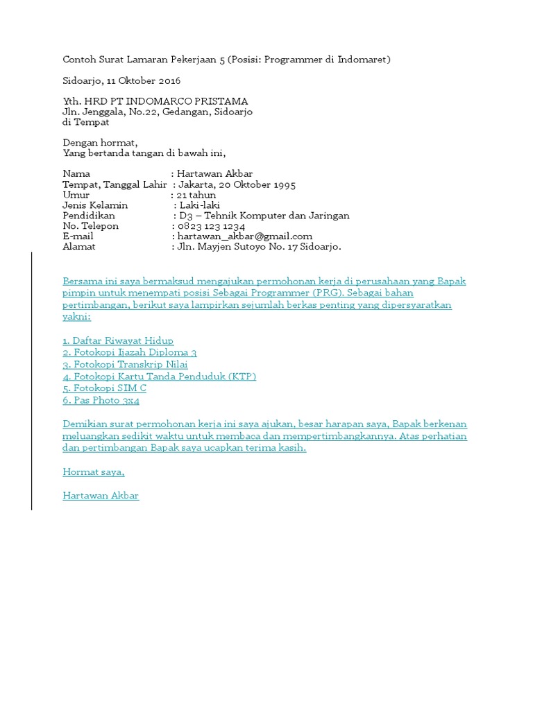 Pelaksanaan kekuasaan negara diselenggarakan oleh kejaksaan agung ri (berkedudukan di ibukota negara), kejaksaan tinggi. Setiap tahun semakin banyak mahasiswa yang mendapatkan gelar sarjana. Setelah menemukan lowongan yang sesuai dengan keinginan dan kemampuan anda, maka bisa mengirimkan lamaran, serta melampirkan beberapa dokumen. Jika anda membutukan contoh surat lamaran kerja umum, anda contoh surat lamaran kerja marketing. Surat lamaran kerja merupakan sebuah dokumen yang dikirim oleh seorang pencari kerja untuk melamar pekerjaan di sebuah perusahaan. Padahal, ada banyak hal yang harus kamu perhatikan. Dengan surat lamaran pekerjaan pihak perusahaan bisa membaca dan menebak karakter dari pelamar kerja. Langsung saja yuk simak penjelasan sekaligus contoh surat lamaran kerja bumn berikut ini. Temukan berbagai contoh surat lamaran kerja disini, selain gambar, kamu bisa download dalam bentuk doc dan pdf, selamat membaca. Atau kamu sedang kuliah namun ingin magang di sebuah perusahaan? Dan berikut kami akan memberikan contoh surat lamaran kerja lengkap. Agus suryadi tempat/tanggal lahir : Hal yang harus diperhatikan sebelum mengirim surat lamaran kerja.
